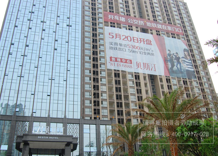 高樓層戶外墻體網(wǎng)格布噴繪廣告畫面制作安裝
