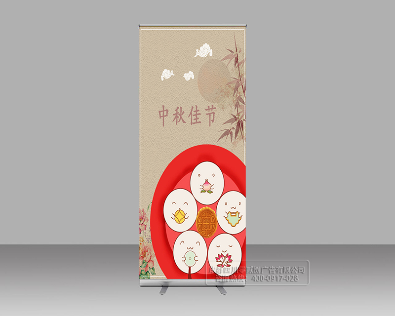 那么都會用什么材料制作中秋廣告宣傳呢,還是要看客戶的選擇。可以選用易拉寶展架形式,易拉寶展架組裝簡單,收放便捷,還可反復使用,只需要重新制作畫面進行更換即可。