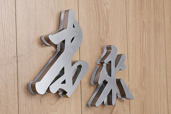 而采用不同的切割工藝,又可以分為精品不銹鋼字、水切割不銹鋼字、激光切割不銹鋼字、無痕不銹鋼字,他們分別是采用腐蝕、水切割、激光切割、線切割的工藝制作而成的,而具體制作流程則;大致相同。先由電腦結(jié)合CAD軟件自動計(jì)算出字體精準(zhǔn)的拐角位置,然后用切割片或者倒角機(jī)械在邊上倒出90度的坡口,再由技術(shù)精湛的師傅用錫焊、氬弧焊、或者是微束等離子焊接,焊接好以后,關(guān)鍵部分就是打磨,要用專用的打磨機(jī)械和拋光拉絲的機(jī)械耐心地打磨、拋光、拉絲。最后工序是讓不銹鋼字表面形成一層鈍化膜,要用專用不銹鋼鈍化液高溫處理,才能使做好的不銹鋼字用手摸都不會變色。