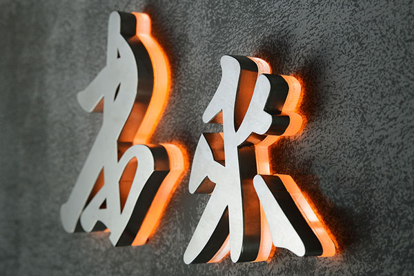 不銹鋼背發(fā)光字具有亮度高,節(jié)能環(huán)保,安裝簡(jiǎn)易,維修成本低?!∨c傳統(tǒng)的霓虹燈發(fā)光字相比,具有雅致、厚實(shí)、節(jié)能、美觀的特點(diǎn)。