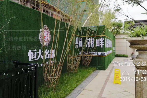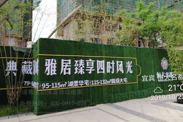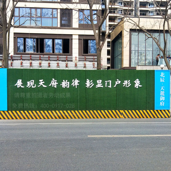現(xiàn)在房地產(chǎn)項目圍墻圍擋廣告制作多是采用假草坪綠植來進行制作,這種用植被組成的工地圍擋也稱為綠籬式圍擋(