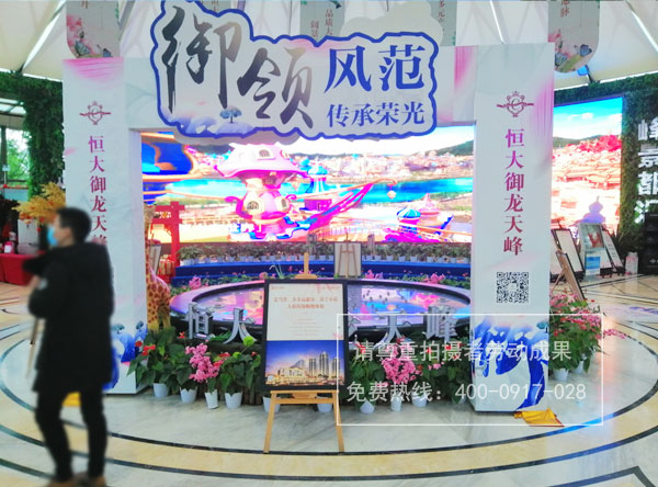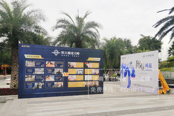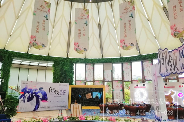 恒大御龍?zhí)旆宓禺a(chǎn)樓盤銷售中心內(nèi)桁架廣告制作安裝
