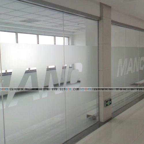 :表面看上去是磨砂狀,背面帶膠可直接帖與玻璃窗上,材料可以用刻字機雕刻,也可用寫真機噴繪出任一圖案。