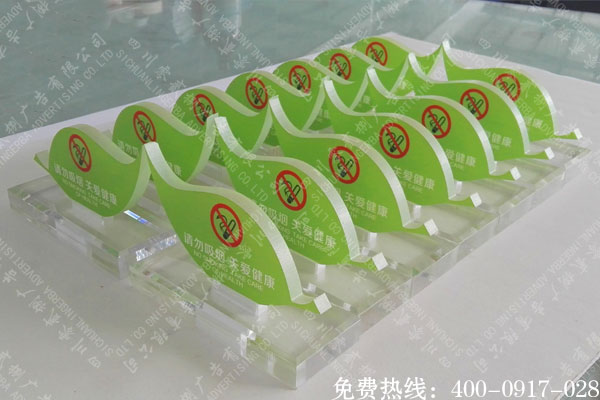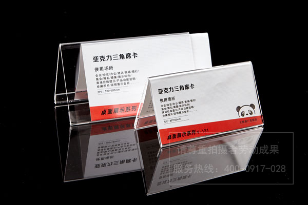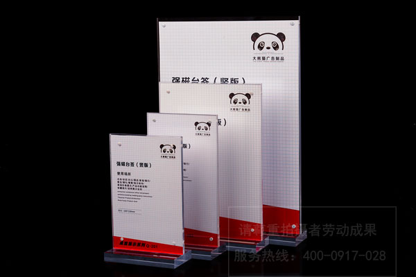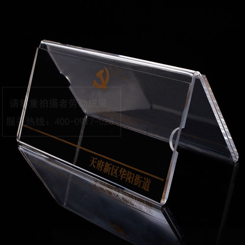 常見的臺簽多是亞克力做的,亞克力折彎造型,雙層,內(nèi)有插槽,可隨時更換內(nèi)容。也有的為了突出品質,采用亞克力背面絲印,背面烤漆,然后熱彎的工藝。由于亞克力的質感比較強烈,光澤度較高,觀感較好,能很好地突出品質感,所以采用亞克力制作的臺簽最多見。除了亞克力,有些臺簽是用鋁型材制作,這種臺簽比較便宜,使用也比較方便,但是檔次看起來要差一些。