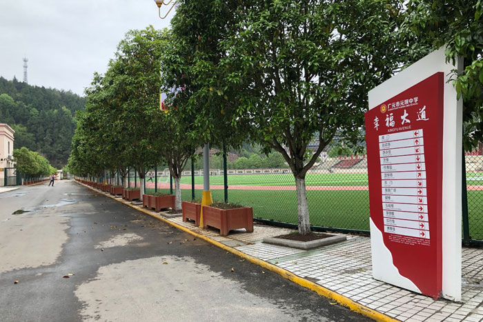 新校區(qū)幸福大道再次詮釋辦學(xué)理念——尊嚴(yán)源于拼搏、幸福來(lái)自?shī)^斗(校園導(dǎo)向標(biāo)識(shí)牌制作安裝)