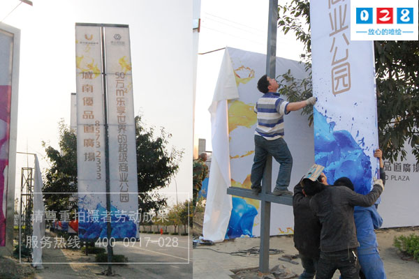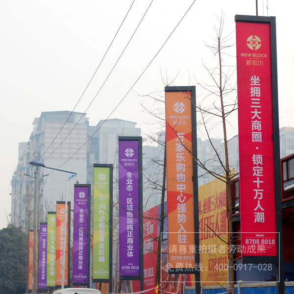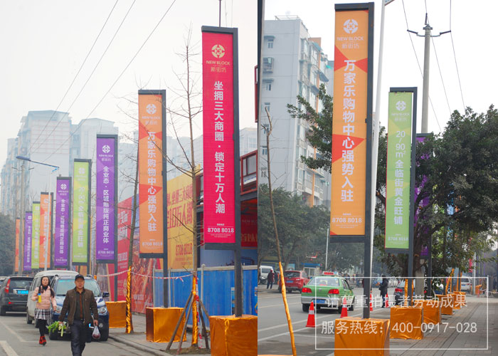 雙流海棠灣房地產(chǎn)項(xiàng)目燈桿道旗制作安裝