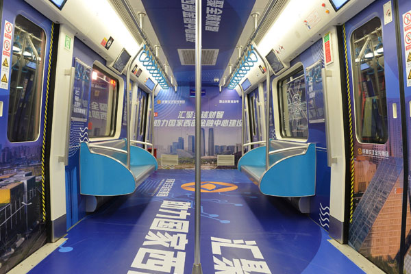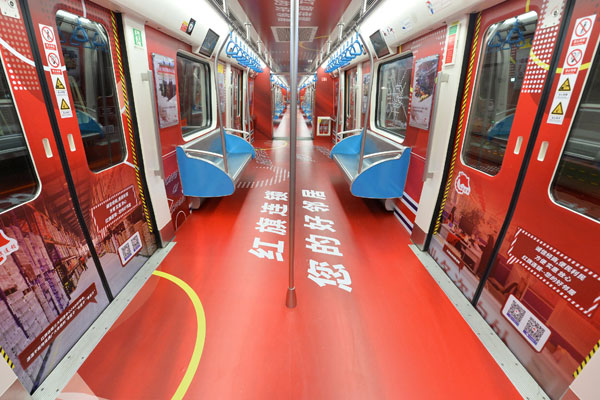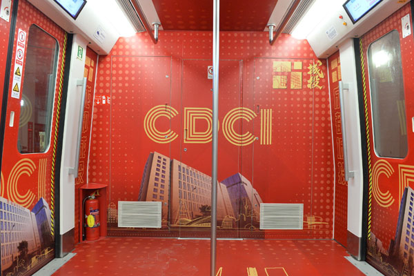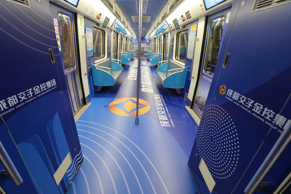 成都地鐵1號線扶貧擔當號主題列車車廂內照片