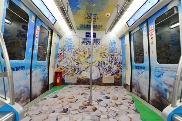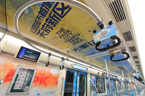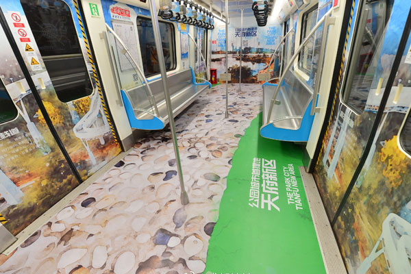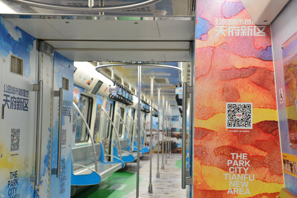 以“公園城市首提地——天府新區(qū)”為主題的“公園城市號”專列在地鐵1號線驚艷亮相。走進車廂內,移步換景,石子路、綠蔭、山水、建筑…一座高顏值、生活味、國際范、有歸屬感的美麗宜居公園城市場景躍然眼前。興隆湖濕地公園、天府總部商務區(qū)、成都科學城、天府文創(chuàng)城……乘坐這列“天府新區(qū)·公園城市號”地鐵,帶你“游遍”天府新區(qū)!