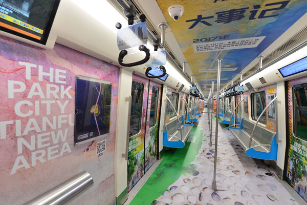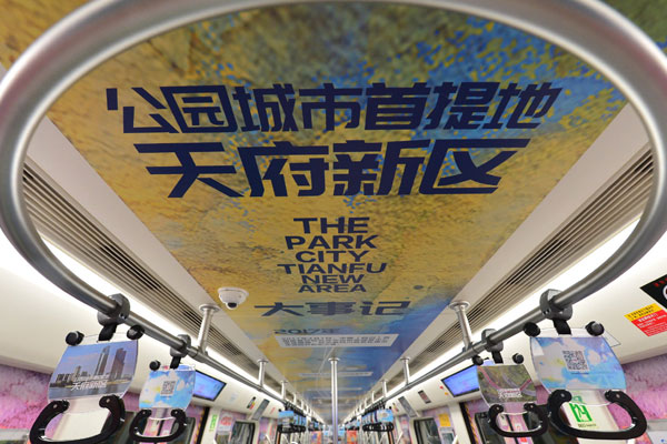 成都地鐵1號線公園號主題車車廂車貼制作安裝