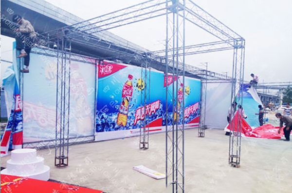 舞臺噴繪廣告布皺了怎么弄:一般我們制作的用在舞臺上的廣告布都會比較的大幅度,所以在運輸中都不太好搬運,卷起來,多多少少會有一點點褶皺,那么,在廣告布上出現褶皺的情況下,我們需要這樣去處理呢?其實有的廣告布在有褶皺的情況下掛一段時間自己就會平整了,因為廣告布自己本身就有一定的重量,在把它展開掛起以后,會有一點垂落感,并且它自己還會經過熱漲冷縮,所以褶皺自然而然就會沒有了,這樣就會變得松一點,那么,我們再把繩子收緊一點,把廣告布拉緊就好了。還有一種方法就是,用溫度比較高一點的熱水淋一下褶皺的部位,當然,熱水需要從廣告布的背面淋,不要從正面去淋。不過在這里還是比較建議讓廣告布掛久一點,等它自己自然的平整,我們在把它收緊就好了。