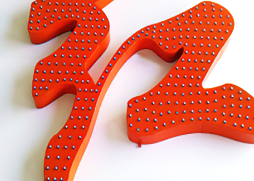 沖孔字又叫鐵皮字,沖孔字要在上面裝上很多的小燈因此來達(dá)到字體發(fā)光的效果.沖孔字做的廣告可以體現(xiàn)出品牌的特點(diǎn),很高的提升產(chǎn)品的檔次。