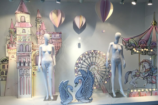 服裝店櫥窗氛圍KT板廣告畫(huà)面布置安裝